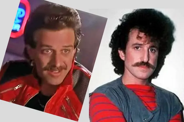 Robbie's best friend in Wedding Singer does the moonwalk and wears one glove, but he's actually a spitting image of Break My Stride guy Matthew Wilder